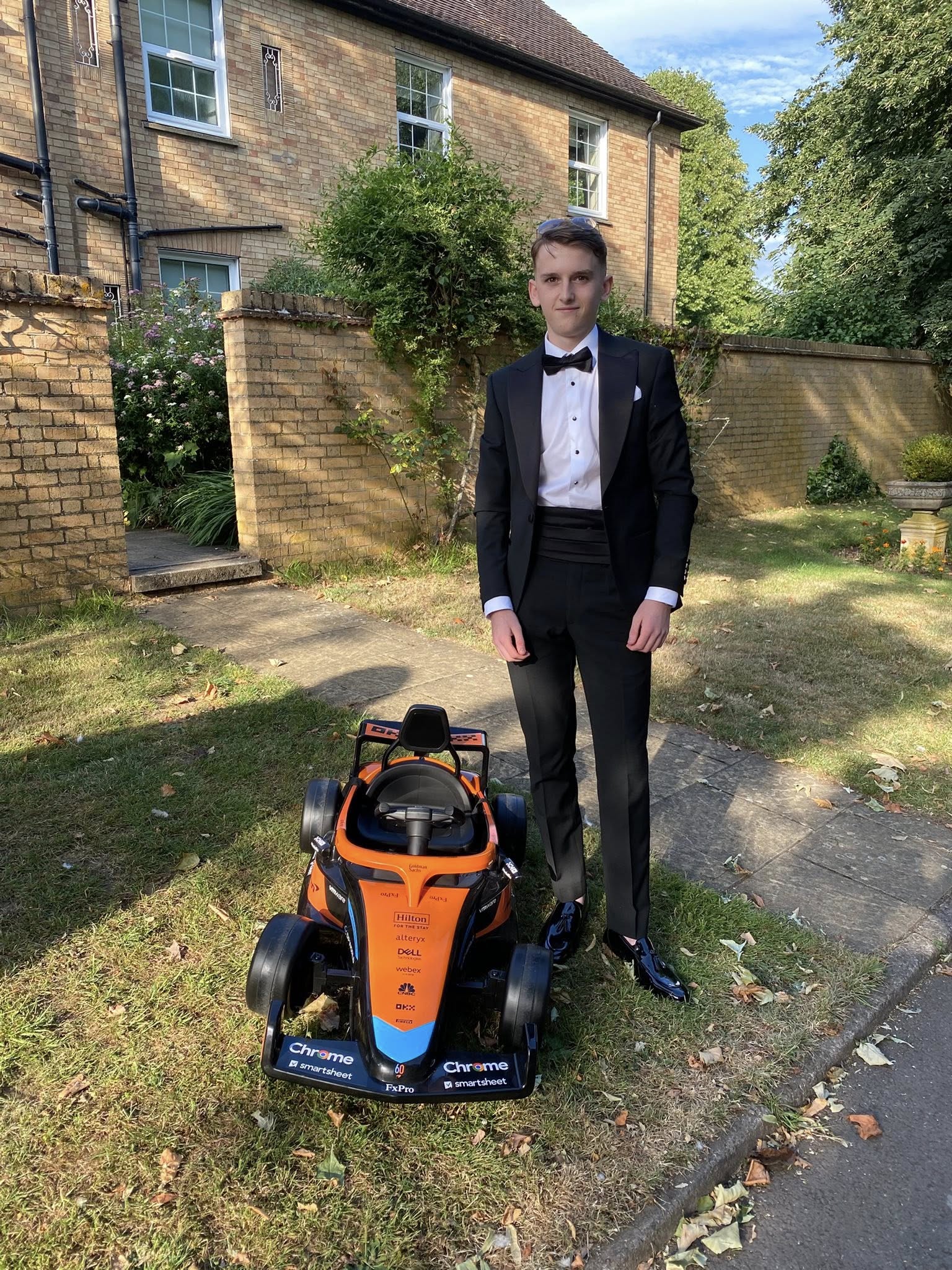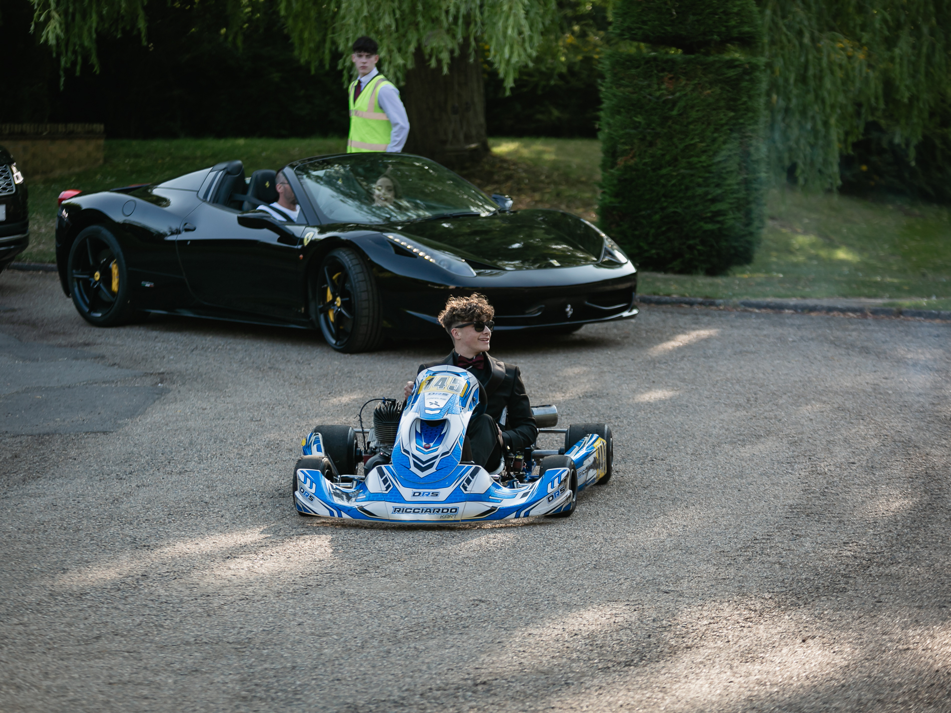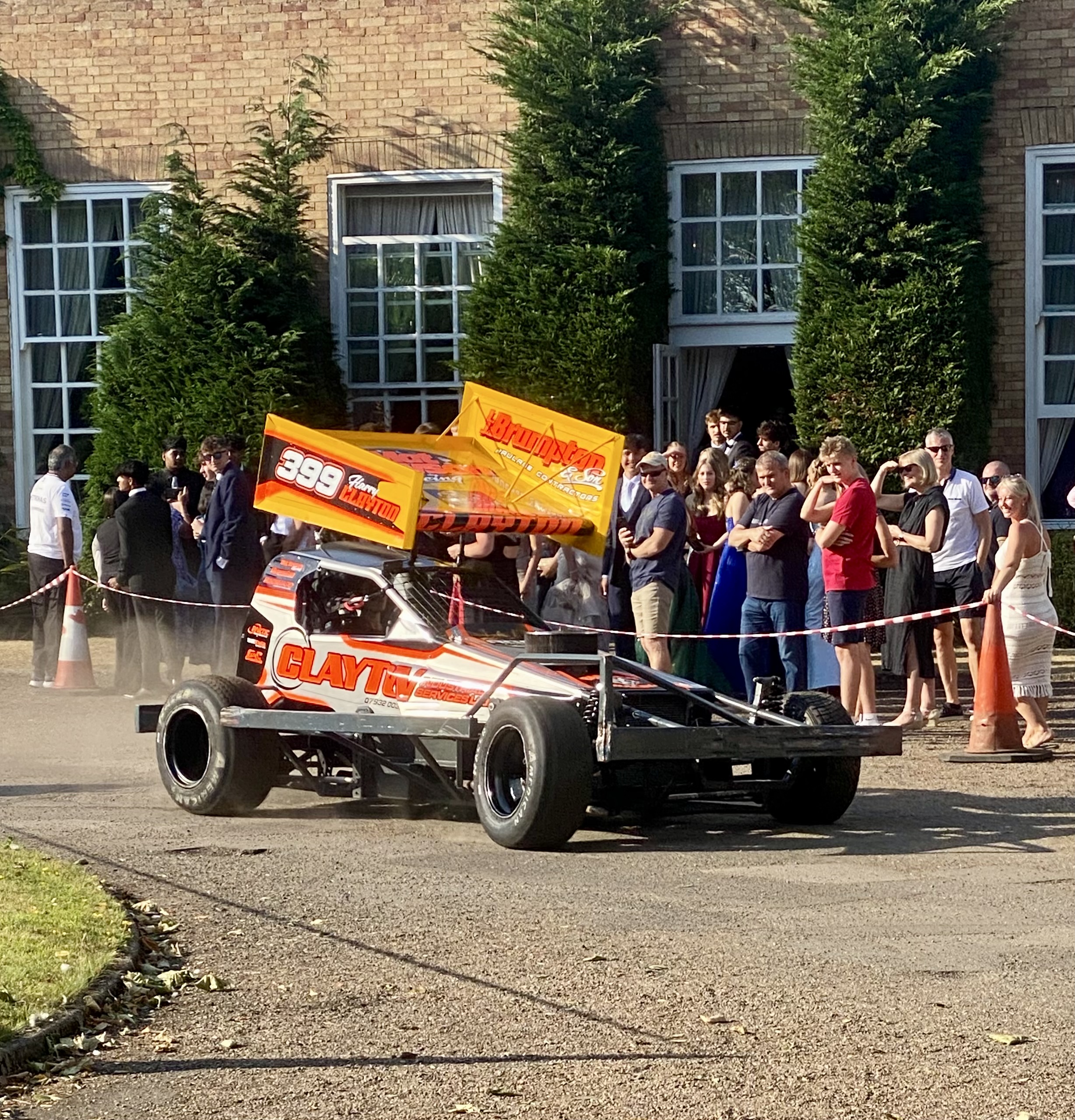 An array of transport including limousines, hummers, sports cars, sugar beet harvesters, tractors, horses, mopeds, go carts, racing cars and stock car bangers made their way down our driveway and around the circle before the students walked up the red carpet to receive their reception drink.